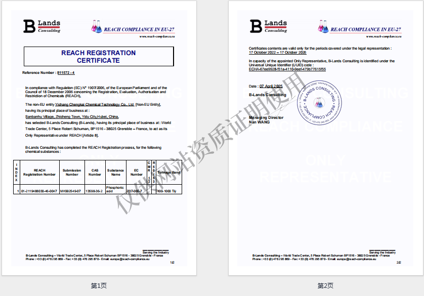 Reach注冊證書