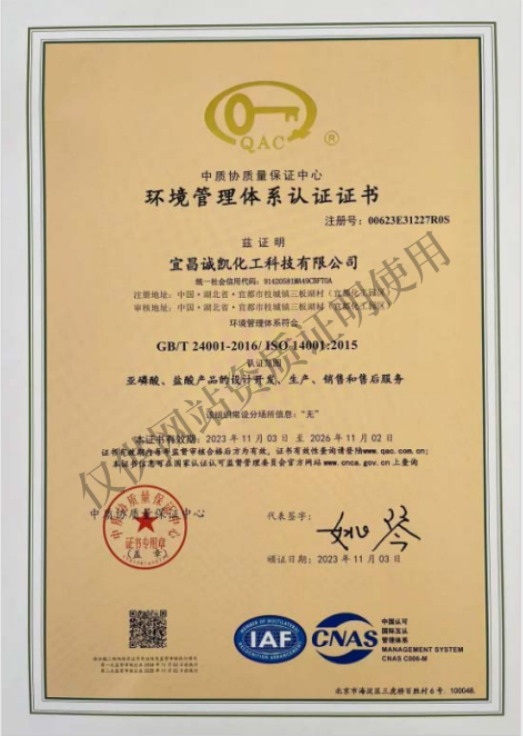 環(huán)境管理體系認(rèn)證證書